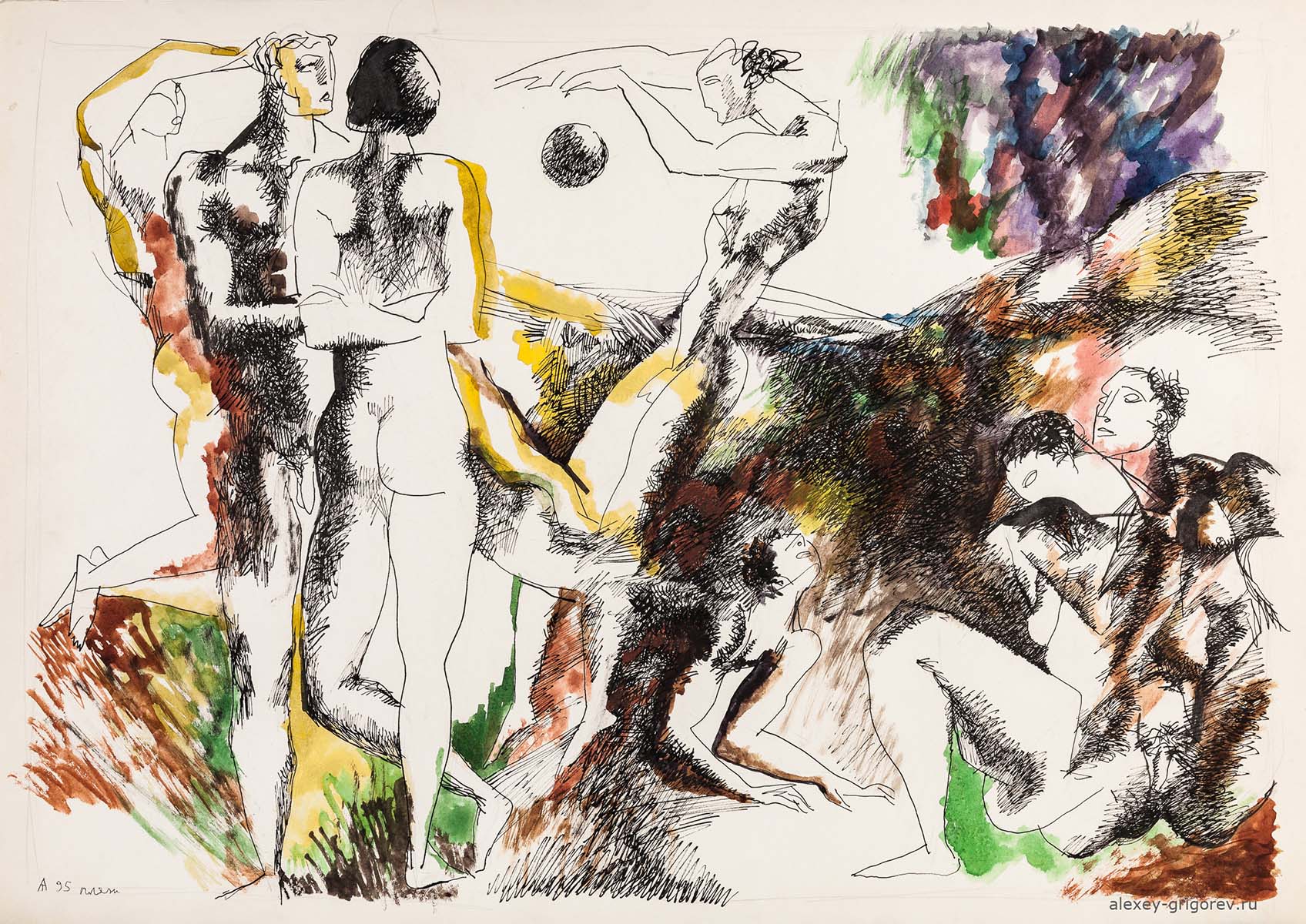 Алексей Григорьев - скульптор, работавший с разными материалами - в своей живописи отдавал предпочтение графике, стиль которой был во многом сформирован благодаря его матери - известной московской поэтессе Надежде Адольфовне Григорьевой (1927-2001). Алексей также выступал в качестве иллюстратора ее книг - "Кураж", "Записки беспартийной", "Я говорю", стремясь своими работами придать объем и полноту произведениям Надежды Григорьевой.