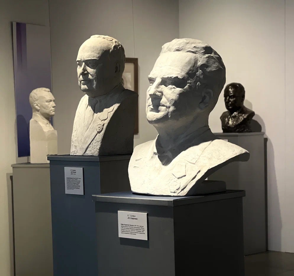 Среди персоналий - Н.Е. Жуковский, К.Э. Циолковский, С.А. Чаплыгин, С.А. Лавочкин, Г.Н. Бабакин, А.Н. Туполев, О.К. Антонов, Р.Л. Бартини, Г.Р. Карапетян и другие. Серьезное изучение жизни и творчества каждого из них позволило скульптору создать правдивые, проникновенные образы деятелей в области самолетостроения и ракетно-космической техники, составивших славу России.