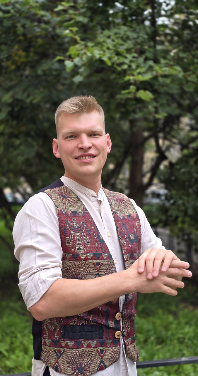 2008-2013 Учился в Санкт-Петербургском художественном училище имени Н.К. Рериха, скульптурное отделение. Педагоги: С.К. Даруев, А.О. Поляков.