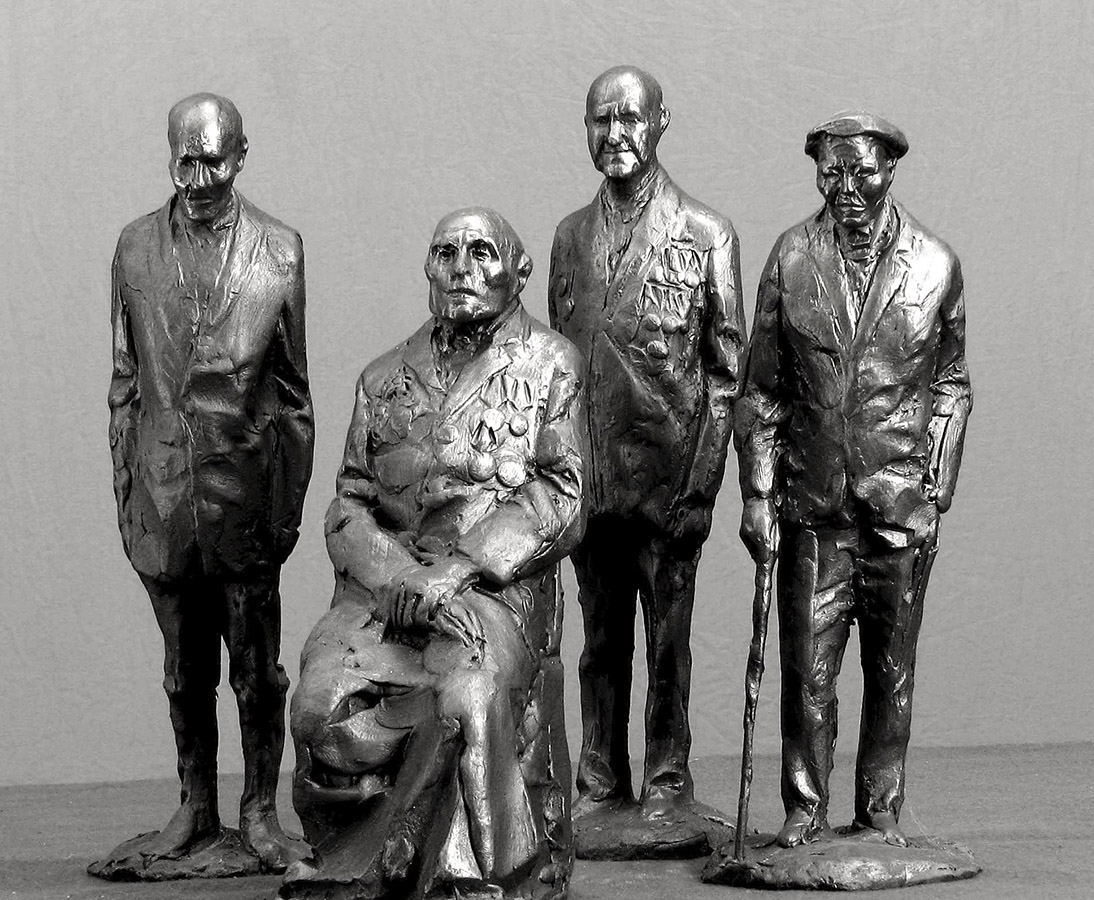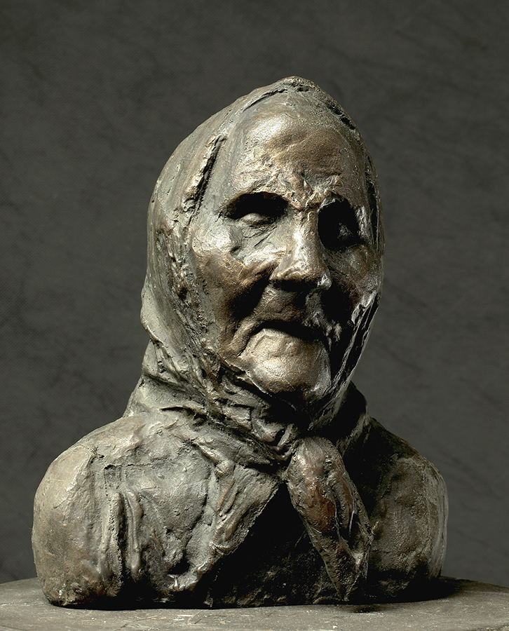 1991 Композиция «Дед и бабушка». Рельеф надгробия, бронза. Старое кладбище, Коломна, Московская область.