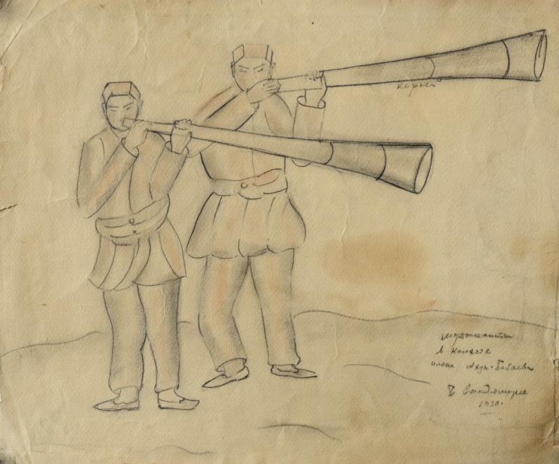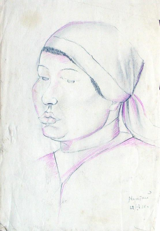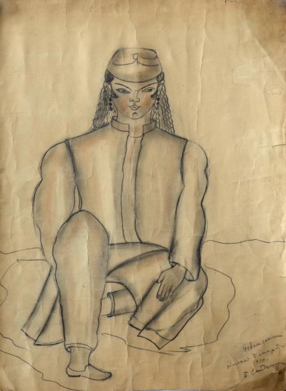 Сандомирская зарисовывала в Средней Азии всех, кто только попадался ей на карандаш: колхозных учетчиков и акынов, женщин, мужчин, стариков, детей. Потом уже (в Москве) из этих скуповатых восточных набросков каким-то чудом прорастали в пространство богатые пластические фигуры и портреты в любимом материале - дереве. Никаких гипсовых моделей или эскизов. Сразу брала ствол или пень и начинала вырубать топором и стамесками форму.