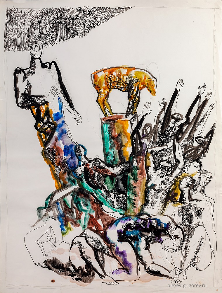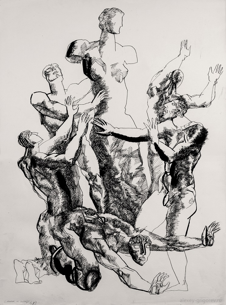 В экспозиции будет представлено около 40 графических работ скульптора Алексея Григорьева (1949-2002), выполненных тушью, периода 1990-2000-х годов. Сами работы Алексея будут сопровождены стихами Надежды Григорьевой.