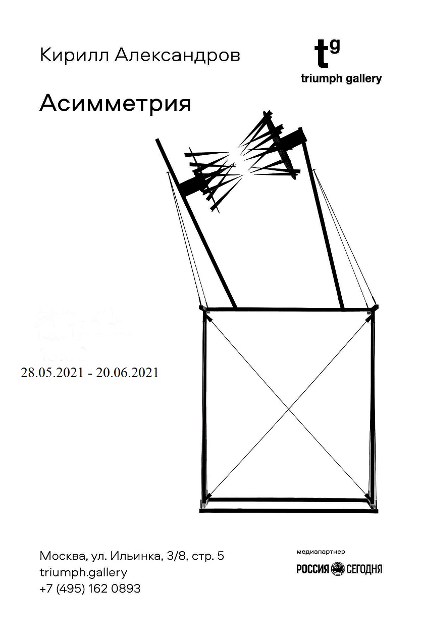 Хаотичный характер подвижности, который транслируют скульптуры Кирилла Александрова, обеспечивается за счет присущей работам асимметричности. Это свойство композиции, заключенное в большинстве представленных работ, отразилось в названии выставки.