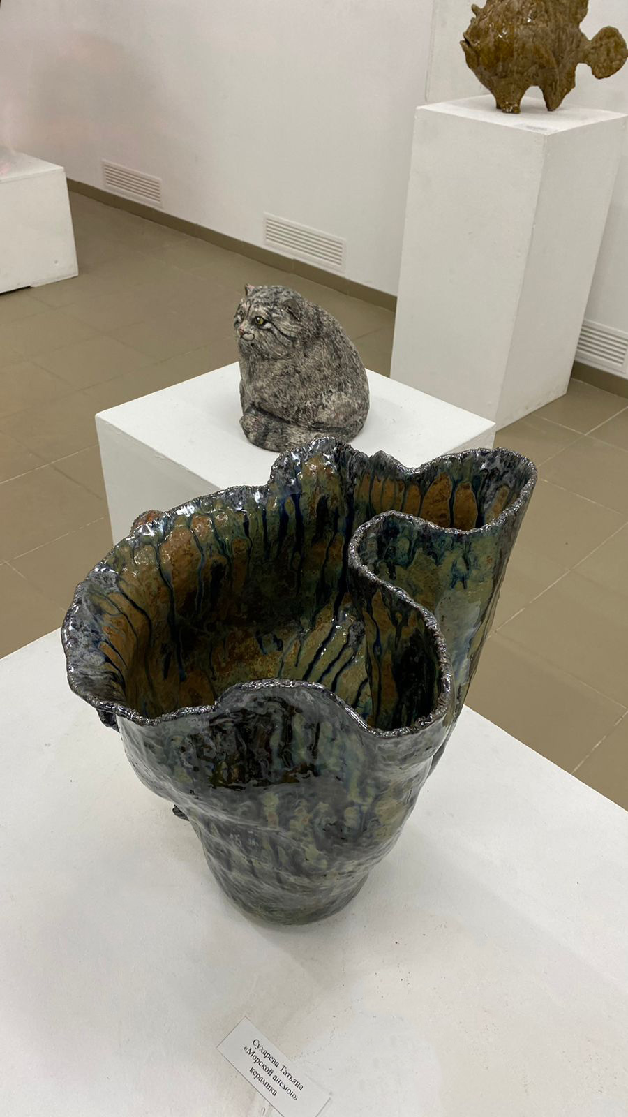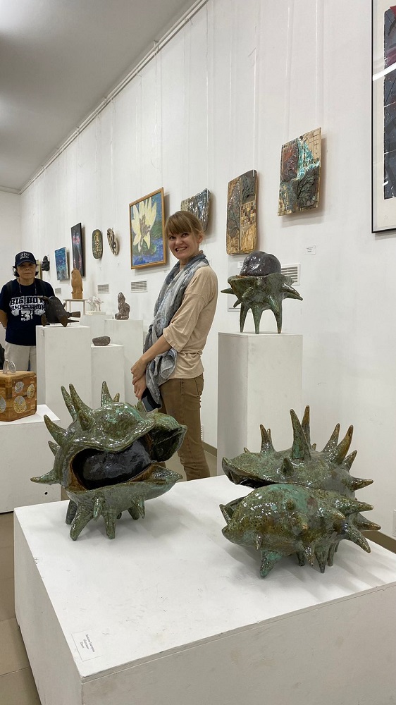 На выставке представлены более сотни работ, выполненных в разных материалах. Это бронза, камень, дерево, керамика, современные композитные материалы. Также на стенах размещены живописные и графические работы.