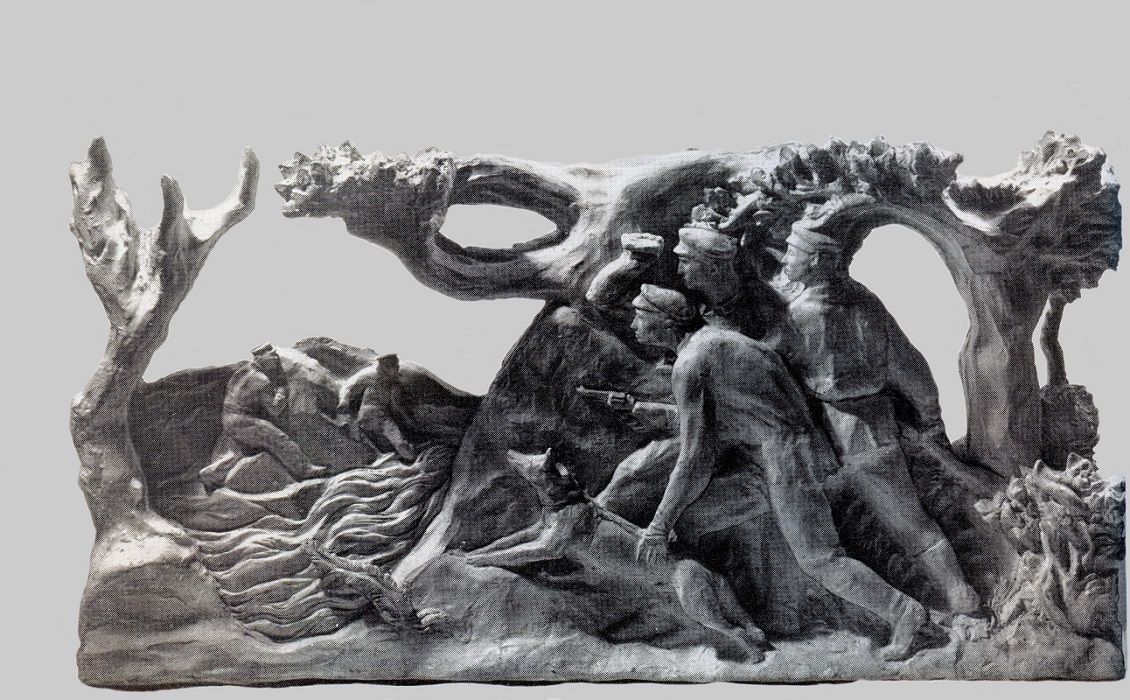 В рельефах на постаменте для памятника Хользунову природа не является фоном или украшением, а активно действует и является органичной частью всего скульптурного замысла автора. "Правый боковой рельеф, - писал Михаил Белашов, - изображает взаимодействие частей Красной Армии с авиацией. Конники осаживают стремительный бег лошадей, вперед в грохоте и пыли вырываются несущиеся на прорыв быстроходные танки, в воздухе их опережает истребительная авиация. Мощный дуб, давая начало всей композиции горельефа, своими ветвями, метнувшимися в сторону от налетевшего вихря, создает настроение бури".